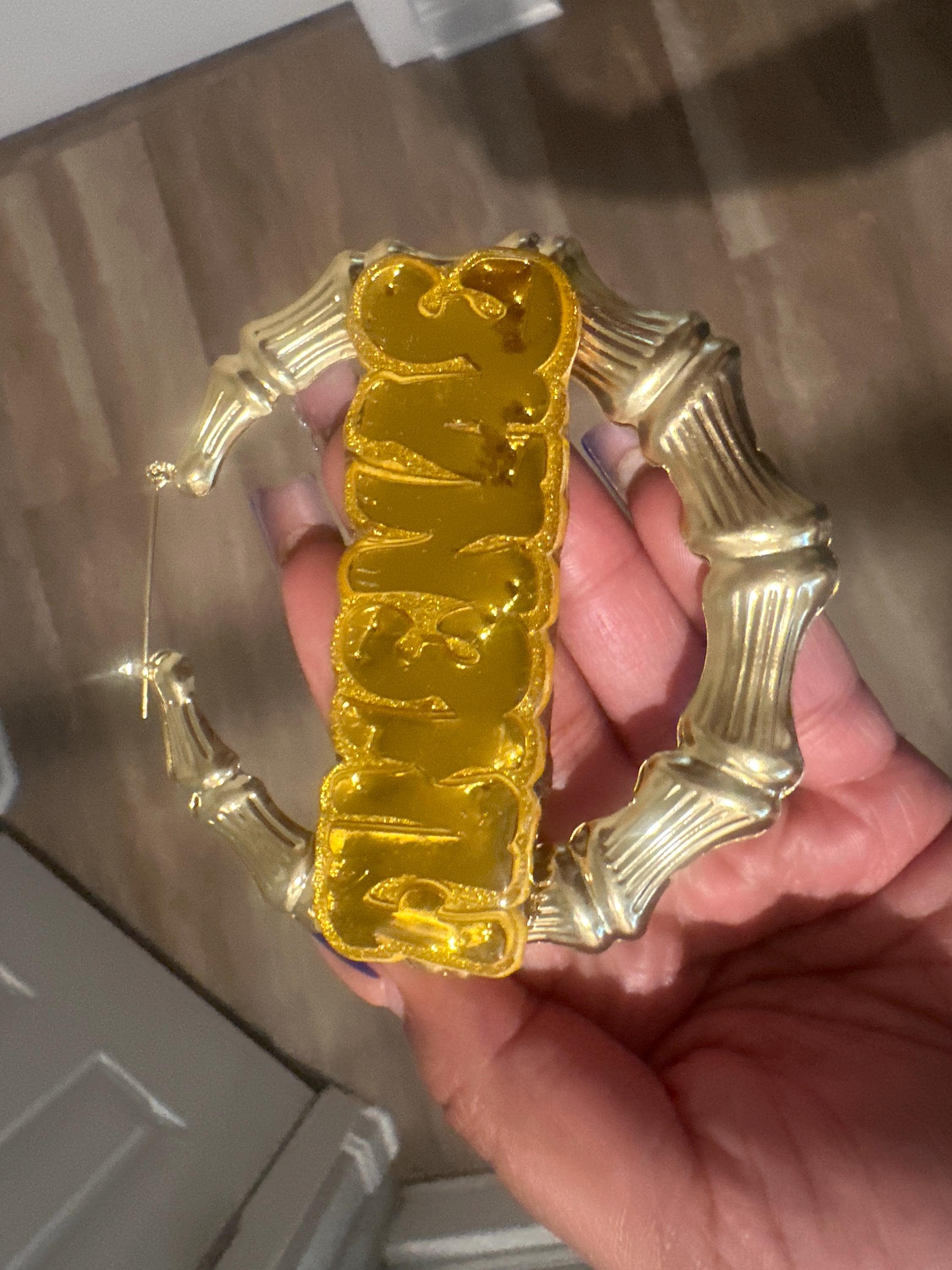Introducing our one-of-a-kind Custom Name Bamboo Earrings, inspired by the vibrant spirit of Freaknik! These earrings are perfect for those looking to make a bold statement and stand out in the crowd. The personalized touch of your name etched beautifully on the bamboo create a unique and stylish accessory that will definitely turn heads. Handcrafted with love, these earrings are not only trendy but also eco-friendly, as they are made from sustainable bamboo. Embrace your inner fashionista and make a statement with these Freaknik earrings that truly reflect your individuality. Perfect for everyday wear or special occasions, these earrings are a must-have addition to your jewelry collection. Stand out from the crowd and express yourself with these Custom Name Bamboo Freaknik Earrings!
