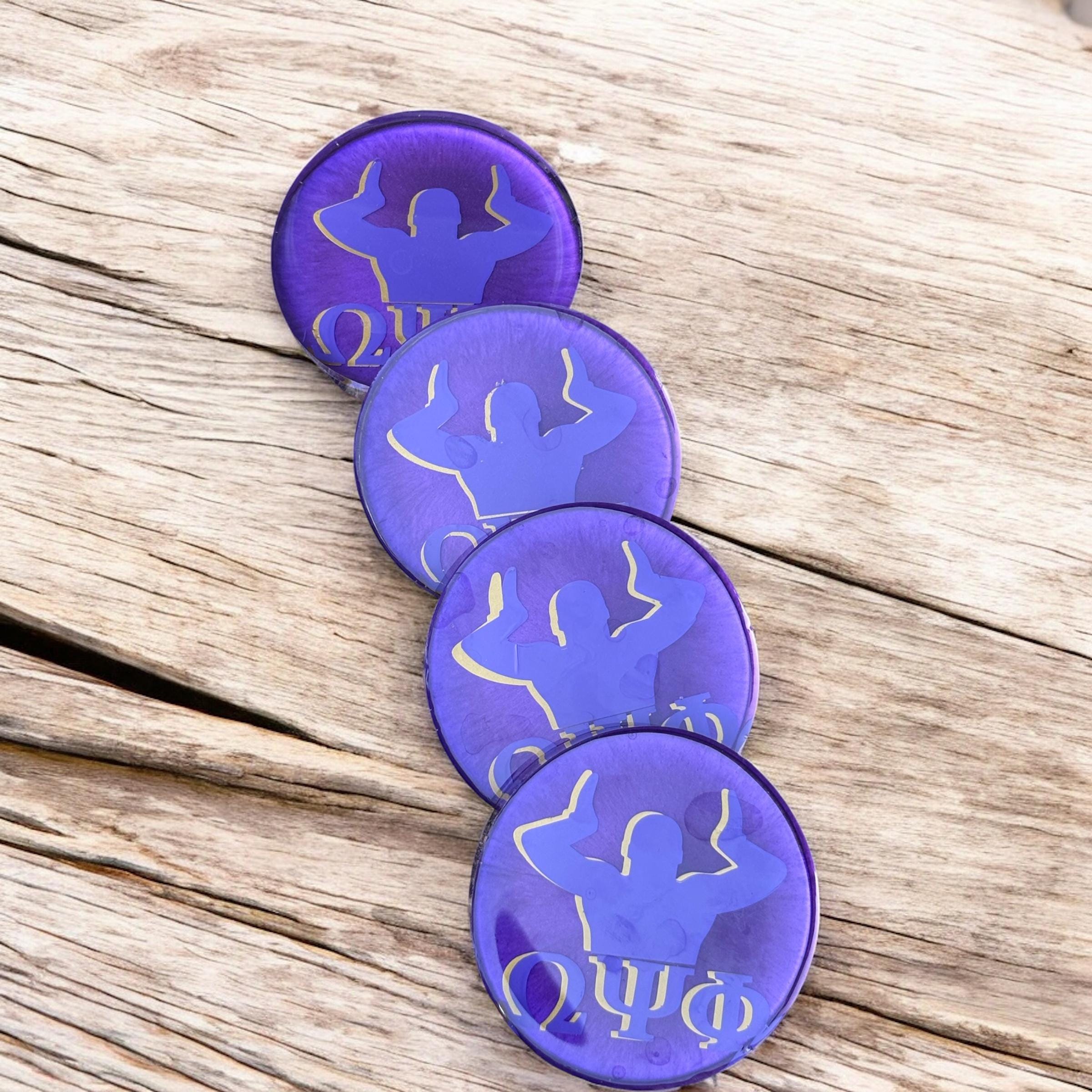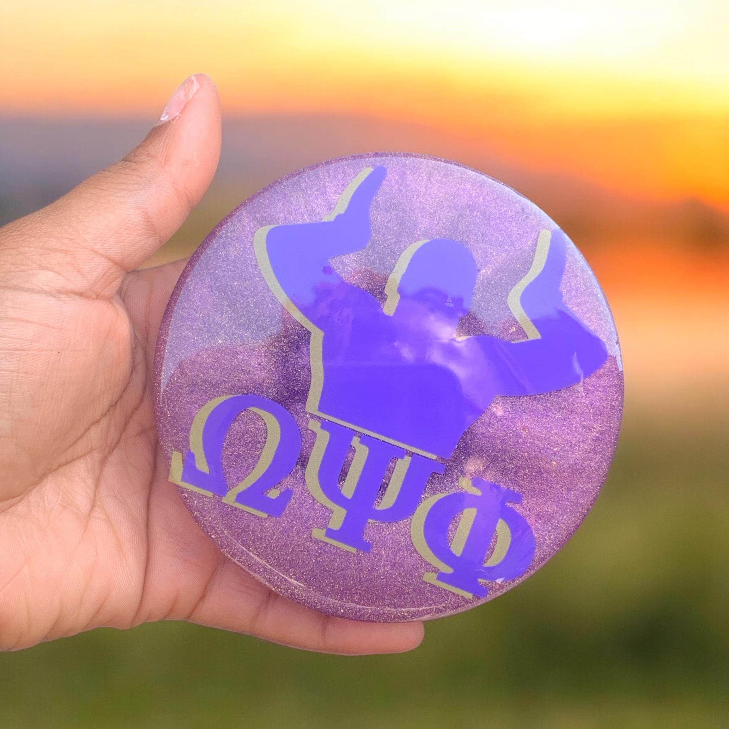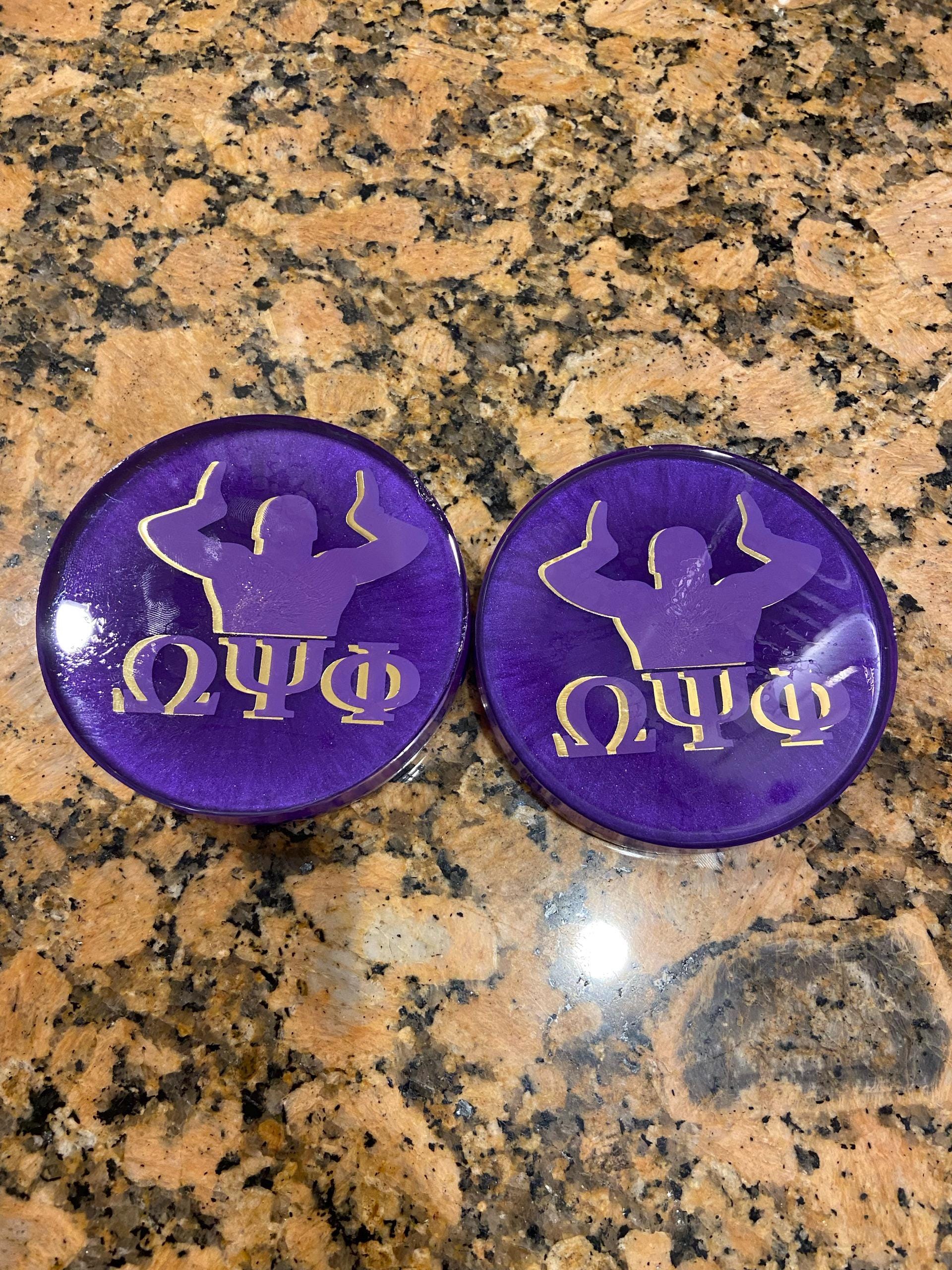 Introducing these handmade Omega Psi Phi Fraternity Resin Coasters, perfect for adding a touch of Greek life pride to your home decor! Each coaster features the classic colors and symbols of Omega Psi Phi, making them a unique and thoughtful gift for your fraternity brothers or a stylish addition to your own space. These coasters are not only durable and functional, but also showcase your fraternity affiliation in a stylish and eye-catching way. Add a touch of fraternity spirit to your coffee table or bar with these one-of-a-kind resin coasters!