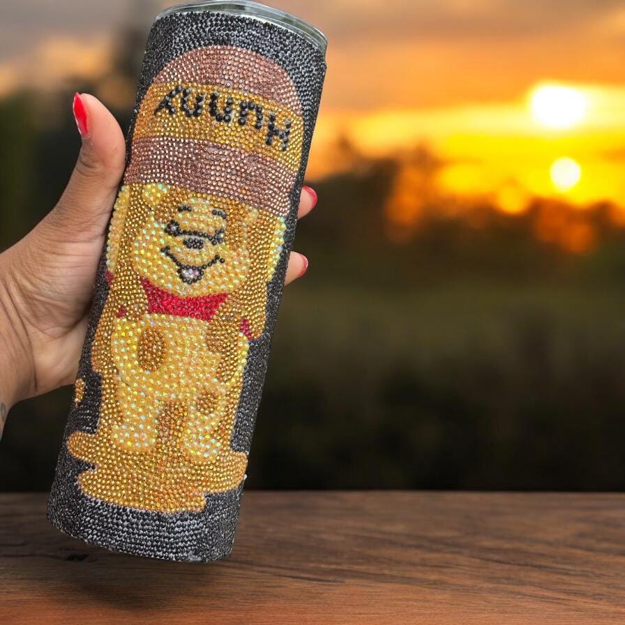 Add a touch of sparkle to your daily routine with this charming Winnie The Pooh rhinestone bedazzled 20 ounce tumbler! Customize the background of Winnie to suit your style. Makes a perfect gift for any Pooh fan! Order yours today and add some magic to your day ✨🍯