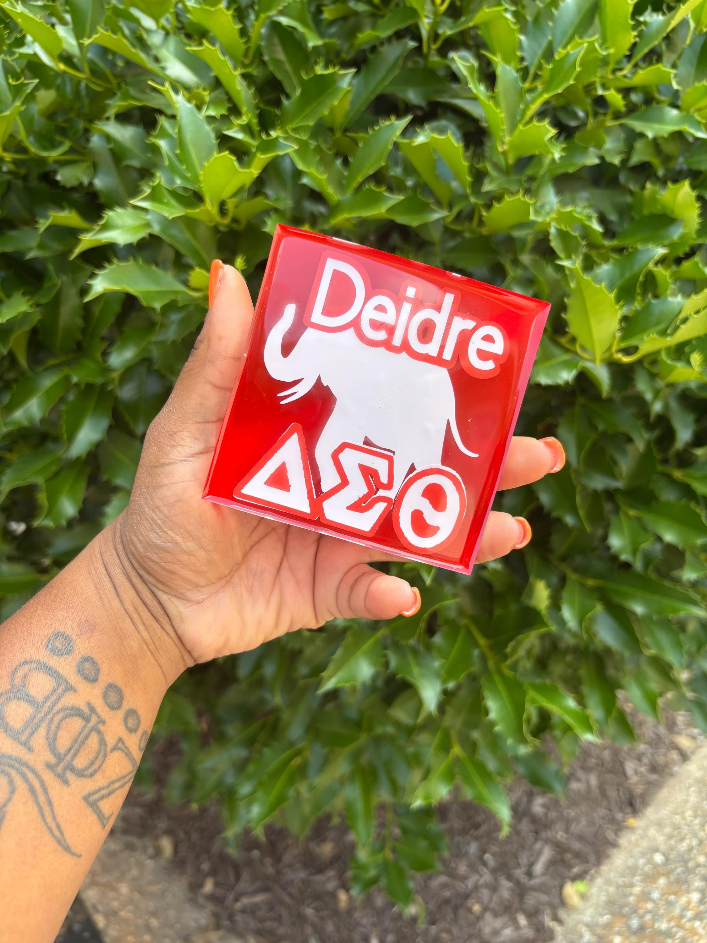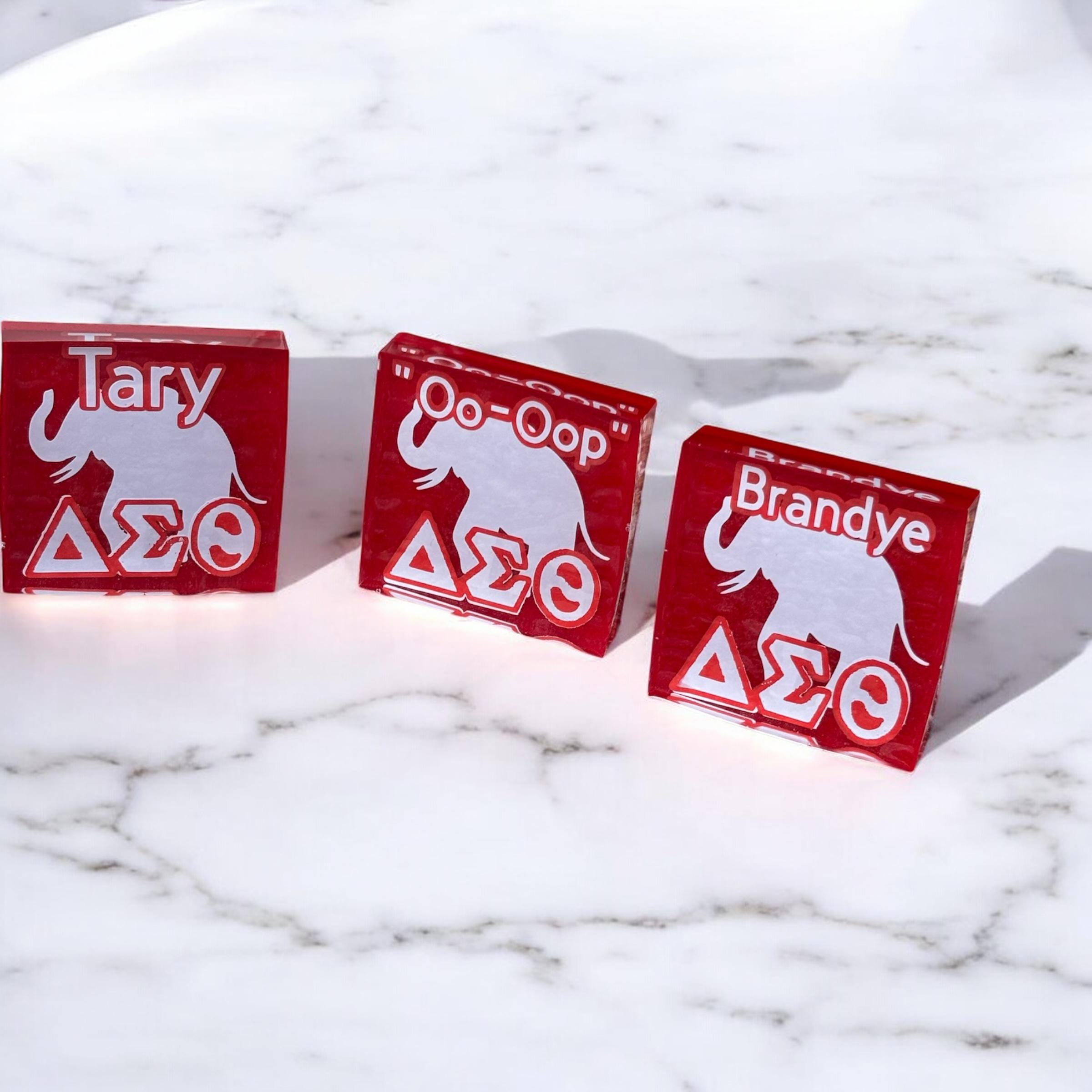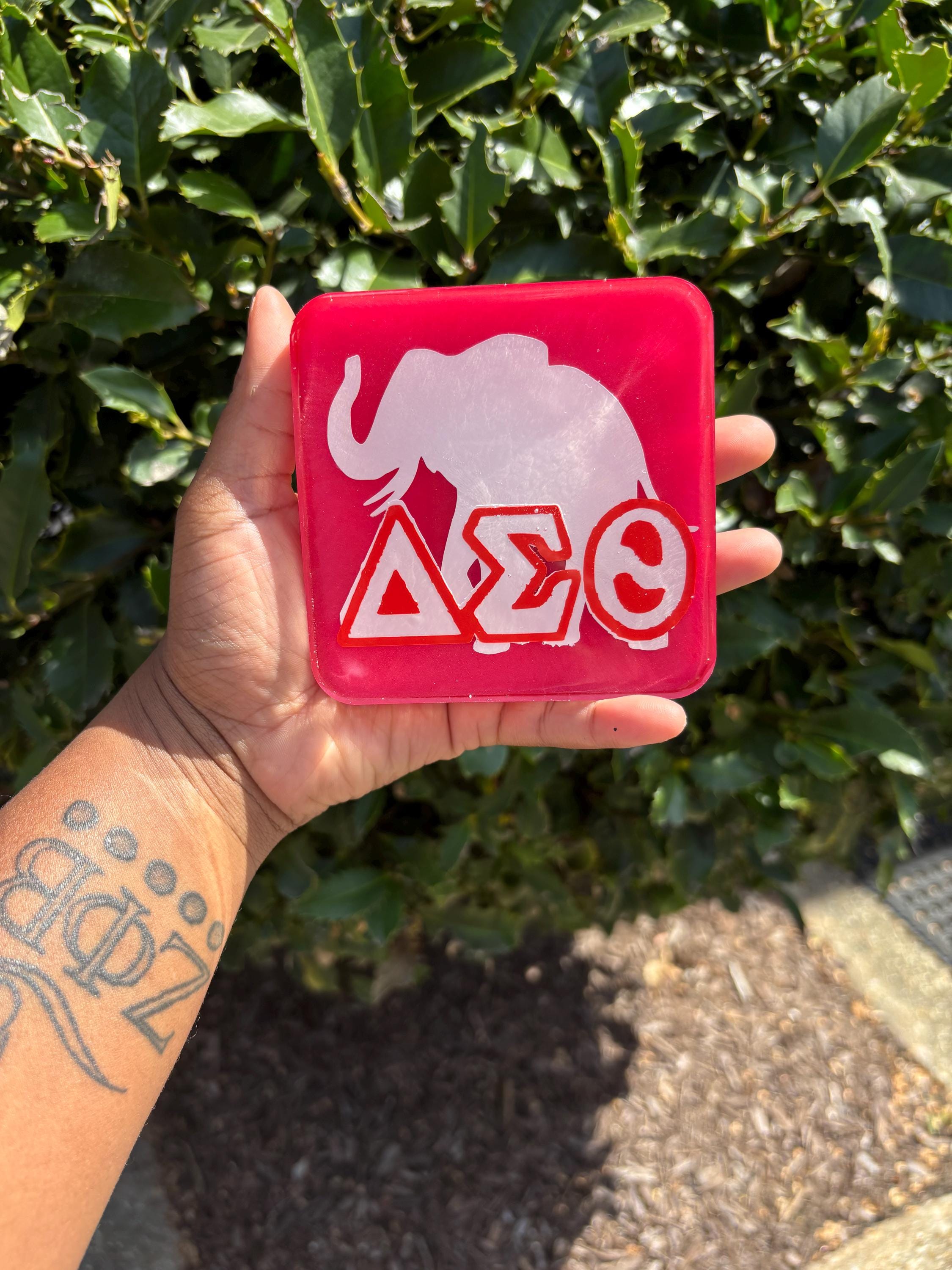 Each coaster is individually poured with high-quality epoxy resin and features the iconic Delta Sigma Theta Greek letters, colors, and elements. No two are exactly alike—making yours truly one of a kind!