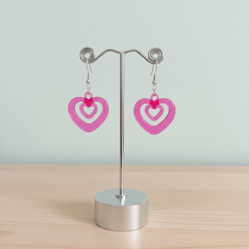 ⢠Handmade acrylic heart dangle earrings
