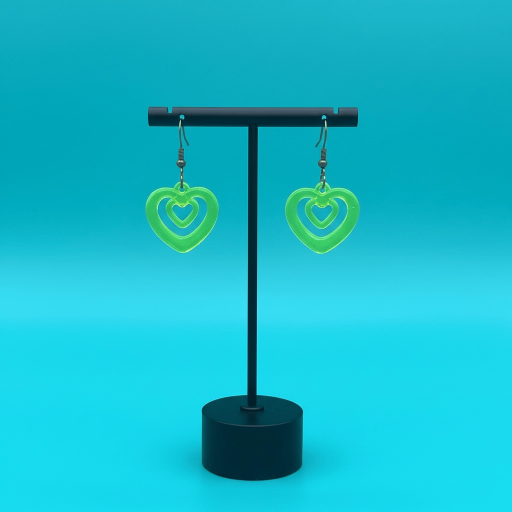 Add a little love to your look with these acrylic heart-shaped dangle earrings š