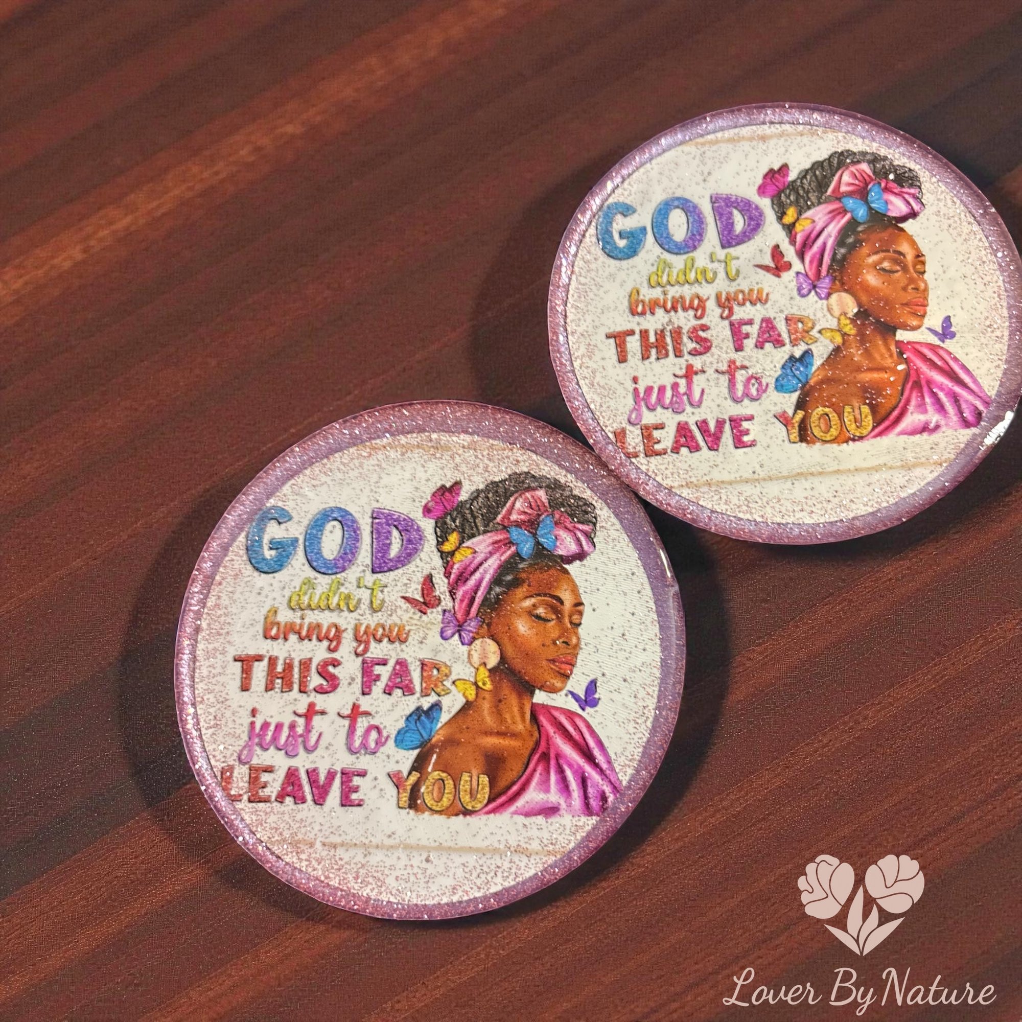 Bring inspiration and beauty into your space with our handcrafted resin coaster featuring a stunning illustration of a confident, graceful Black woman surrounded by butterflies. This design includes the encouraging message: “God didn’t bring you this far just to leave you,” making it a perfect daily reminder of faith, strength, and perseverance.