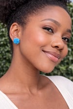 Add a soft pop of color to your look with these Light Blue Resin Flower Earrings, lovingly handmade for a fresh and feminine touch. Each earring features a delicate, sky-blue resin flower—lightweight, dainty, and perfect for everyday wear or special occasions. At 1 inch wide, they make a subtle statement that pairs beautifully with any outfit.
